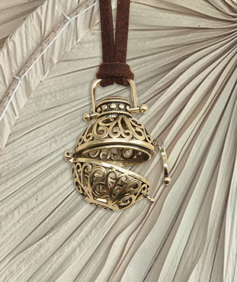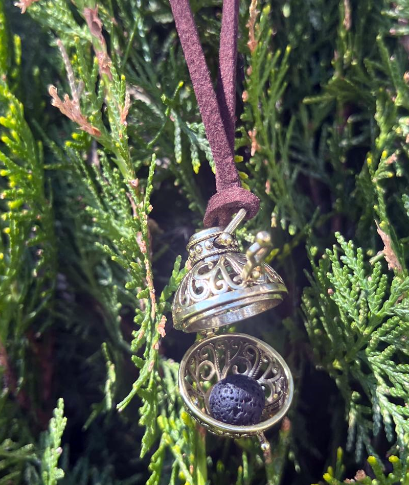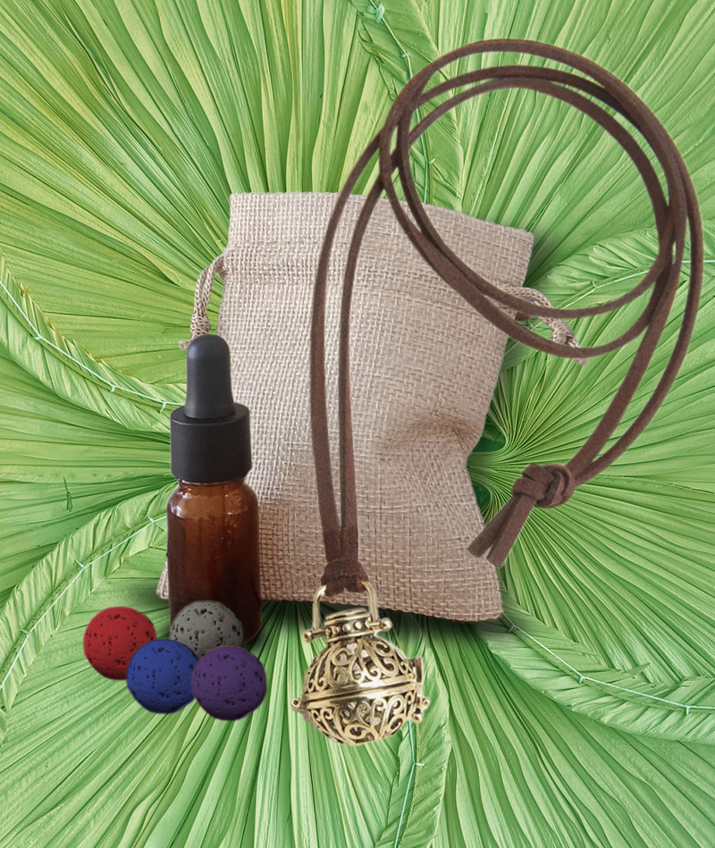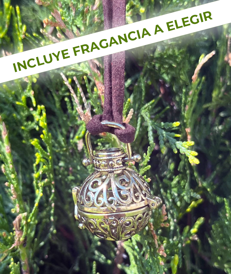 Llamador de Ángel dorado con cadena de cuero ajustable y piedras volcánicas. Incluye collar + 4 piedras volcánicas de diferentes colores. Introduce la piedra volcánica dentro del llamador e impregna el aroma elegido en la piedra volcánica. La fragancia dura días. Unas pocas gotas bastarán para disfrutar de los beneficios terapéuticos revitalizantes o calmantes de la fragancia con aceites esenciales puros y ecológicos.