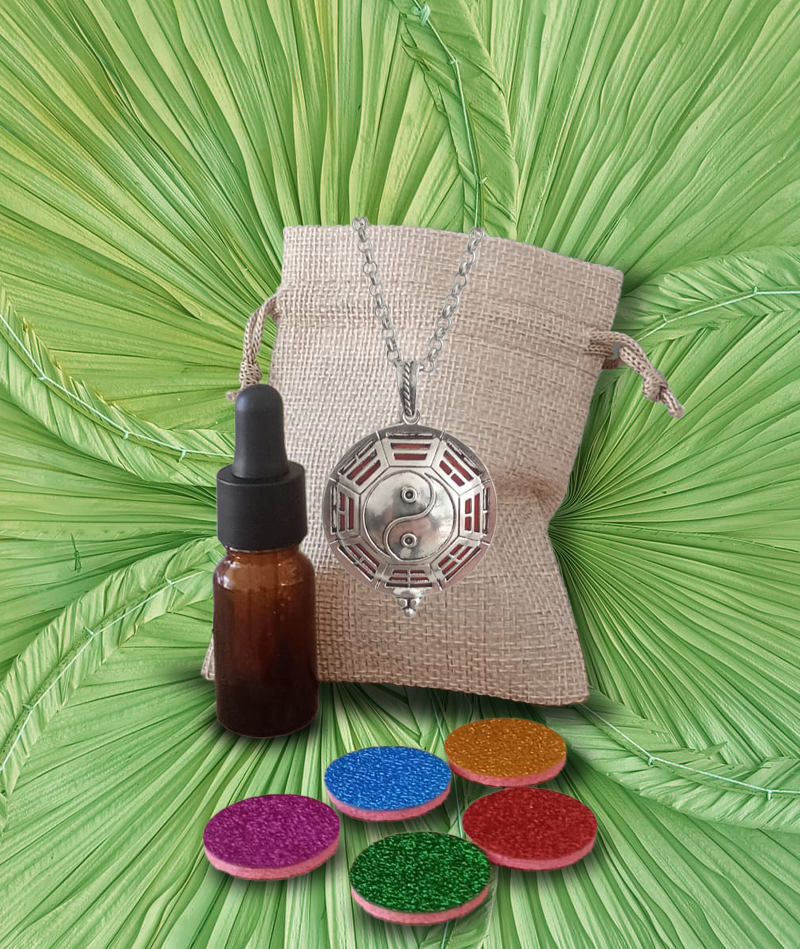 Precioso collar con colgante con decoración yin yang acabado en plata vintage. Este collar está hecho de material de calidad hipoalergénico. Incluye 10 esponjitas de diferentes colores para que impregnes el aroma escogido. Puedes combinar la esponjita para que haga juego con la ropa que lleves. La fragancia dura días. Unas pocas gotas en la esponjita bastarán para disfrutar de los beneficios terapéuticos revitalizantes o calmantes de la fragancia con aceites esenciales puros y ecológicos.