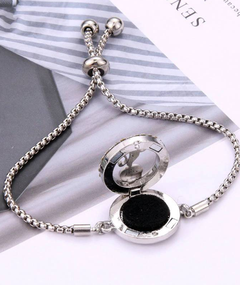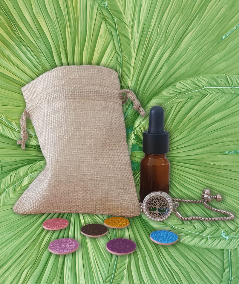Pulsera plateada de acero inoxidable hipoalergénico con medallón de árbol de la vida difusor de aroma. Incluye 1 esponjita de color verde para que impregnes el aroma escogido. La fragancia dura días. Unas pocas gotas en la esponjita bastarán para disfrutar de los beneficios terapéuticos revitalizantes o calmantes de la fragancia con aceites esenciales puros y ecológicos.